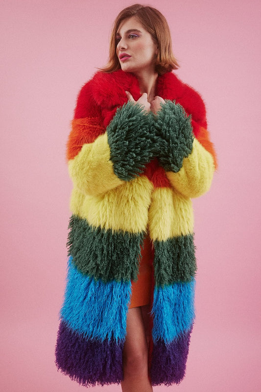 Handmade Rainbow Bamboo Maxi Coat - Multicolor